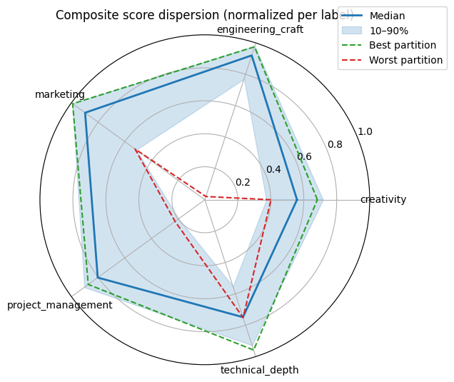 Formally, if we think of latent traits and skills as being encodable in a vector, you want to create teams that can span a large vector space. Of course, there is an element to which it will be important to be able to interpret dimensions in such a vector space.