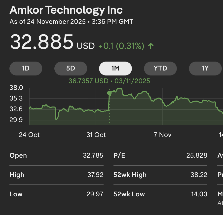 After a bit of search, you arrive at the conclusion that the only entity that appears to have positive supply capacity in this space is — Amkor Technologies. This triangulation was done through multiple iterations.
